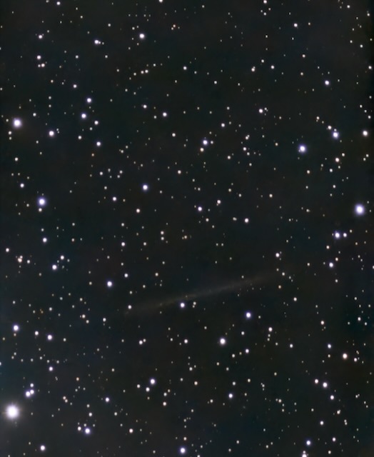 3I/Atlas on a Seestar S50 by brian @ 13:00:52 - [perma-link] The faint diagonal streak near the middle of the image is the 3I/Atlas comet. My Seestar S50 live-stacked 6-7 (heh) hours of 10s subs, starting in the late evening on Jan 12.